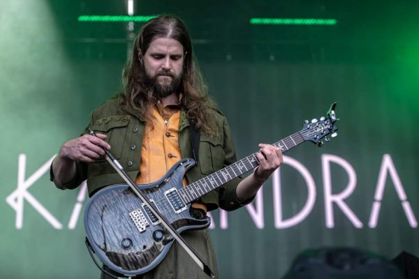 Persze a munka és egyéb teendők miatt szépen le is késtem a Lindy-Fay Hella & Dei Farne előadását, de szerencsére a Kalandra előtt volt időnk kényelmesen elhelyezkedni a színpadhoz közel. A norvég és svéd tagokból verbuválódott zenekar az alternatív rockot keveri az északi kultúrára jellemző népies motívumokkal. Az én ízlésemnek kissé lágy ez a fajta zene, viszont élőben kíváncsi voltam rájuk, és nagyon kellemes csalódás ért. Nem csak zenéjükben, de színpadi megjelenésükben is megidézték a régmúltat, kicsit fantasy irányból megközelítve azt. Egy nagyon visszafogott és szép dalt választottak kezdésnek, az andalító dallamok és Katrine Stenbekk varázslatos énekhangja már meg is teremtette az este atmoszféráját, ami innentől csak nőttön-nőtt. Nemcsak a dalok struktúrája delejezett meg, de az egész előadás felépítése remekül működött, mert egyre jobban kicsúcsosodott az egész, néha kicsit visszavettek a lendületből akusztikus gitárpengetéssel, hogy utána újult erővel és lendülettel adjanak az érzésnek. Hozzáteszem, még sosem láttam elektromos gitáron úgy játszani valakit, hogy pengetés helyett vonót használ, és még jól ki is lehetett hallani, ezért már megérte részese lenni ennek az időn és téren átívelő kellemes utazásnak. A hangulatot számomra a dobos játéka is magasra emelte, a modern és a törzsi témák váltogatása meglepően jól működött, és igazából az egész előadás patent volt hangzás terén is. Nagyon tetszett, amit a színpadon csináltak, az előadásmód, a zene és Katrine kedves kis köszönetnyilvánításai, látszott rajta és a többieken is, hogy valóban nagyon hálásak mindenkinek, aki eljött az első budapesti fellépésükre. Sajnos a vártnál jóval rövidebb szettet hoztak, így mikor bejelentették, hogy már csak egy dal fér bele, meglepetten állapítottam meg, hogy a headliner kezdésig még van fél óra.