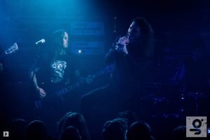 Jött a Brought to the Water, és a terem egy emberként mozdult meg a New Bermuda egyik legjobb dalára, hihetetlen hatásosnak bizonyultak élőben azok a thrashesen horzsoló riffek. Daniel Tracy olyan erővel hozta a lemezen is elképesztő blastbeateket, hogy sokszor az államat kerestem a padlón, egy fikarcnyi hiba nélkül dobolta végig az estet, Chris Johnson basszerrel remek párost alkotnak a ritmusszekcióban. Kerry McCoy gitáros meg egy hihetetlen figura, annyira nem illik össze esetében a látvány és a zene, színpadi jelenléte és mozgása viszont nagyon egyedi. Ő egy igazi szuper-geek, aki szerencsére sokkal jobb formában van, mint egy éve, rengeteget fogyott, szinte új ember lett. A Worthless Animal után a banda levonult, majd egy lelkes visszataps után elnyomtak még három számot, kezdve a You Without Enddel, ahol Kerry gitárját leakasztva billentyűkön kísérte társait. Jó volt szusszanni egyet a csépelések között, bár sok időnk ezután nem volt pihenni. Az ezután elővezetett Glint számomra az est fénypontja volt, a záró Dreamhouse pedig már népünnepélybe átcsapó hangulata miatt is külön említést érdemel, itt George már be is vetette magát az első sorokba egy kis szörfözés erejéig, miután az Inter Arma gitárosa is előbbukant a semmiből hogy fejest ugorjon a tömegbe. Pazar befejezése volt szettjüknek, megköszönték a figyelmet, majd szerényen levonultak.
