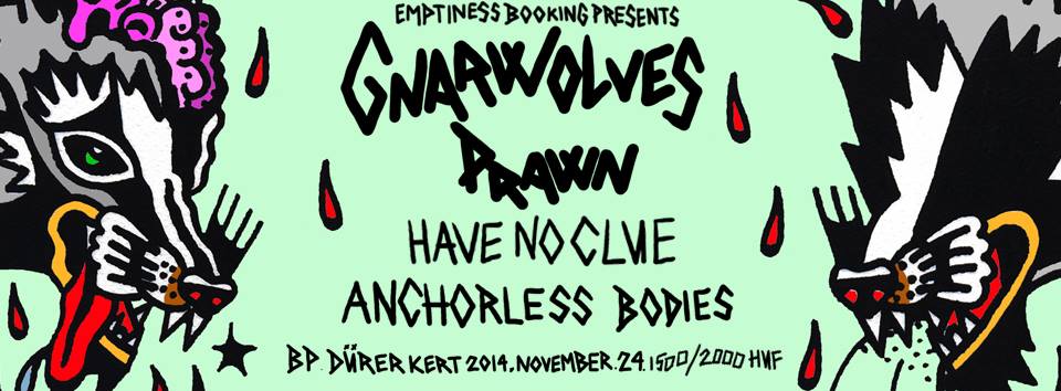 Ejtettem már szót korábban arról, hogy egy amerikai zenekar is vendégeskedett a Gnarwolves előtt, ez a csapat a PRAWN névre hallgató brigád, akik a hanyagul öltözködős, szövegközpontú, elszállós emo vonalat képviselik, és mint kiderült sokkal nagyobbat képesek alkotni élőben, mint a felvételeiken. Ennek egyáltalán nem az az oka, hogy hatalmas színpadi jelenlétük lenne, sőt, konferálni például alig akartak, minek is, elvégre ők úgy voltak vele, hogy valószínűleg itt a kutya sem ismeri őket majd, akinek meg megtetszik esetleg amit ők művelnek, azok elolvassák a plakáton a nevüket, és utánuk keresnek. Akkor miért is volt az este legnagyobb katarzisa a PRAWN? Mert míg lemezen túlságosan is lapos post-rock hangzással keverte ki az ügyeletes hangmérnök a dalaikat, addig élőben ez az egész sokkal konkrétabb, dinamikusabb, és pozitív értelembe véve nyersebb! Mint egy pici Brand New. Akik nem voltak ott, azok remélhetik, hogy lesz alkalmuk elcsípni még egyszer őket valahol, tényleg.