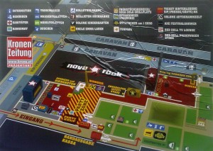 A buszmegállótól a pénztárakig legalább fél órás úttal kell kalkulálni, egy esetleges sorban állás pedig szintén rendesen meg tudja dobni a dolgot. A legmeglepőbb dolog viszont az volt és ez most az egész fesztiválra vonatkozik, hogy szinte minden szegmensében különbözött a hazaiaktól. Igazából sokszor csak néztem és nevettem, hogy ez most komoly-e. Elsőként a biztonsági őrök. Nyilván idehaza minden aktív éjszakai életet élőnek igen pozitív és bensőséges kapcsolata van a biztonsági őrök kasztjával (igen, ez a szarkazmus helye), de odakint vicces volt megtapasztalni, ahogy bemegyek a méretes táskámmal egy ilyen óriási tömegrendezvényre, odalép hozzám egy kislány SECURITY feliratos dzsekivel és szigorúan nézve rácsap kettőt a táskámra, majd azt mondja, mehet. Jó, persze ez valahol pozitív, mert legalább nincs nem kívánt anális motozás és egyéb inzultálás (továbbá itt meg kell említenünk a fesztivál legnagyobb húzóerejét: bármennyi alkoholt és ételt be lehet vinni), de ha valaki fegyvert, bombát vagy bármi egyéb hasonszőrű nyalánkságot akar behozni, annak ez tényleg nem nagy kihívás. Ellenőrzés azonban nem csak a beléptetésnél van, ugyanis fesztivál alapvetően két területre oszlik, az egyik magában tömöríti a mind a kék, mind a piros színpadot és a köztük lévő utat, a másik pedig magában foglalja a végtelen tűnő sátormezőket, illetve a fennmaradó infrastruktúrát. Az egyszerűbb megértésért nézd meg a mellékelt ábrát. Az ellenőrzés második szintje a két terület közötti átjárásnál válik esedékessé, ahol többségében hasonlóan fiatal srácok végzik a motozást, de ide már jóval kevesebb tárggyal mehetsz be, de persze lelkesebb és kitartóbb fesztiválozóknak a kívánt tárgy becsempészése itt sem jelent túl nagy gondot. A másik legnagyobb különbség a hazai fesztiválokhoz képest az infrastruktúra. Bár külföldi fesztiválon még soha nem voltam, idehaza jó pár helyen tiszteletemet tettem, de, amit itt láttam és tapasztaltam a három nap alatt az több tekintetben is ijesztő volt. Egy. Minden csak németül volt kiírva és az osztrákok se nagyon szerettek más nyelven beszélni, ami, azért a külföldi: főleg magyar és szlovák vendégeknek semmiképpen sem pozitív. Kettő. Egy darab tábla sem volt kirakva, hogy mit merre találunk. Három. Az alapvető igényeket kielégítő koncert sör WC szentháromságot leszámítva a bungee-jumpingon és a kajáldákon kívül az égvilágon semmi más nem volt, ami egy ekkora, cirka 80000 főt tömörítő fesztivál esetében, mondjuk a Szigettel összehasonlítva véleményem szerint gáz. Persze az embereket nem kellett félteni, mert mindenki gondoskodott a saját szórakoztatásról, de úgy gondolom ez egy elég masszív negatívum. Négy. Az oké, hogy sokan ledobják a szemetet a földre, mert már úgyis kurva mindegy, de az, hogy az egész fesztivál területén kevesebb kuka van, mint józan ember, az tényleg ijesztő (konkrétan egyet láttam). Persze, ha kellően be vagy lőve, akkor még kellemes is lehet bokáig gázolni a szarban és az ételmaradékban, de azért akkor is. Öt. A por. A fesztivál előtt olyan előmunkálatok, mint a föld benedvesítése és ledöngölése mindenképpen ildomos lett volna, mert az hagyján, hogy minden koncert után úgy néztem ki, mint egy pompeji lakos, de a koncertek egy idő után átcsaptak élvezhetetlenbe a kialakuló porfelhők miatt. Azt pedig el képelni se akarom mit lenne volna, ha egyszer is el kezd esni az eső…
