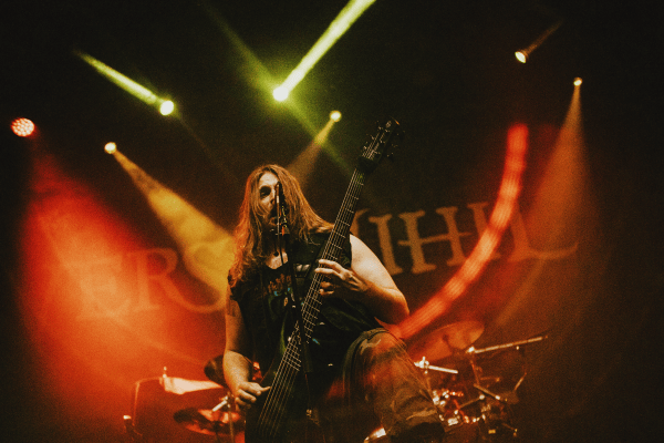 A Rivers of Nihilt legutóbb egy éve láthattuk a Dürerben, a Faces of Death nevű, értelemszerűen halálmetálos, de ahhoz képest igencsak agytornáztatós turnécsomagban, most pedig messze ők voltak az este legprogresszívebb, vagy legalábbis legváltozatosabb zenekara. Náluk a darálós és málházós riffhegyek közé simán beférnek a pszichedelikusnak mondható elszállások is, szaxofonszólókkal színesítve (azt hiszem, örök szívfájdalmam marad, hogy ezekre nincs egy élő zenészük, pedig igény, az volna rá), sőt, néha még tiszta ének is van (szentségtörés!). A kordonba kapaszkodó első sorokon - na meg a sarokban unottan telefont nyomkodó kölykökön - végignézve látszott is, hogy az őrjöngésre vágyó és szomjazó közönség egy része nem annyira tudott mit kezdeni ezzel a kifinomultabb, kontrasztosabb zeneiséggel, de ettől még a Rivers of Nihil is egy imádnivaló műsort rakott le szűk 40 percben, a legutóbbi The Work helyett nagyrészt az anno szintlépést hozó Where Owls Know My Name albumra kihegyezve, de már a készülő következő anyag eddig megjelent előzeteseit is csatasorba állítva.