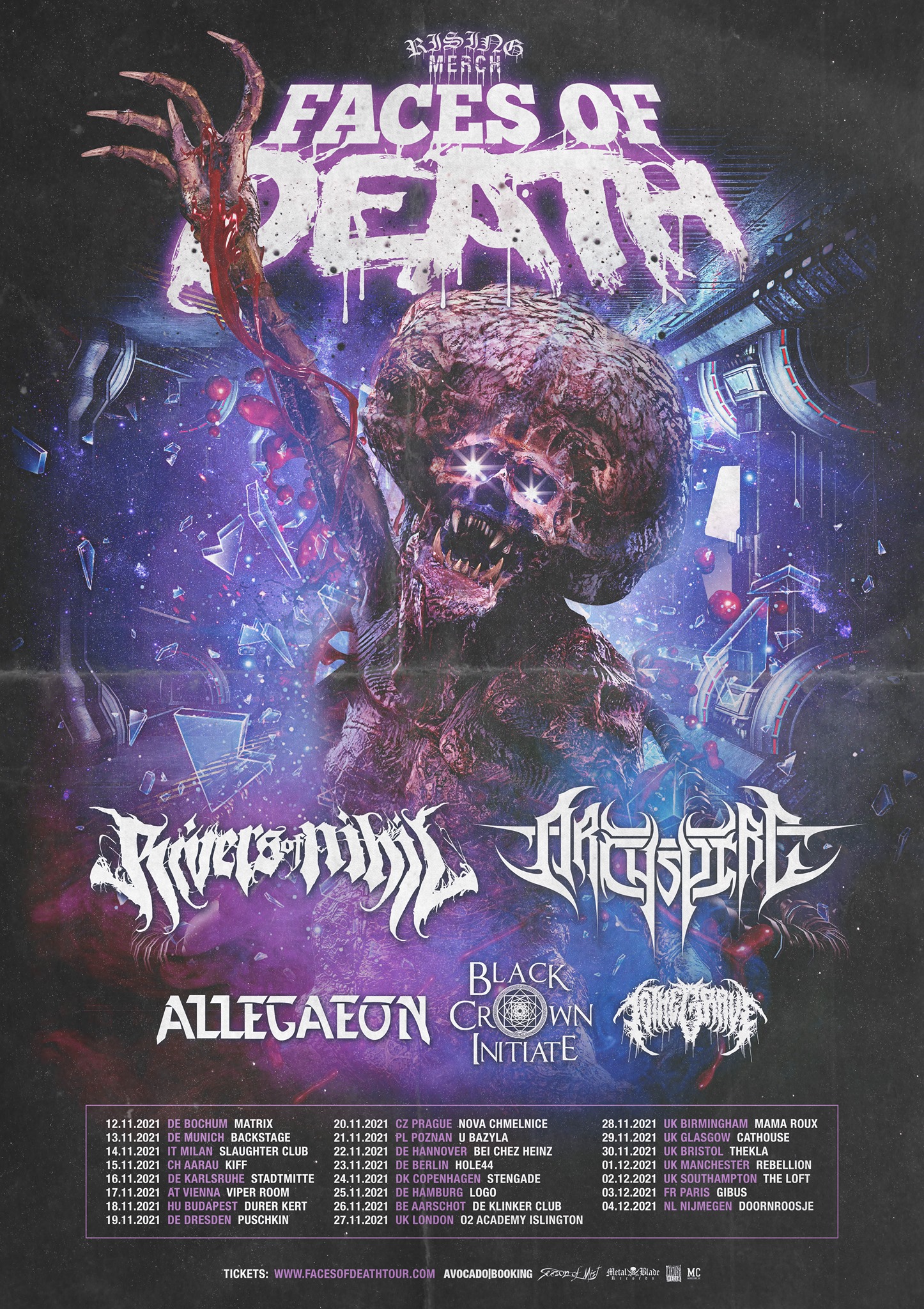 Igen erős, progresszív/technikás death metal-alapú pakkot jelentett be jövő novemberre az Avocado Booking és a Rising Merch. A Faces of Death címre keresztelt koncertsorozat két headlinere a Rivers of Nihil és az Archspire lesz, mellettük pedig szintén útra kel az Allegaeon, a Black Crown Initiate és a To the Grave is. A turné november 18-án éri el Budapestet, helyszínnek előzetesen a Dürer Kertet jelölték meg, amely akkor már biztosan az új helyén fog üzemelni. A buliról minden további infó az eseménynél.