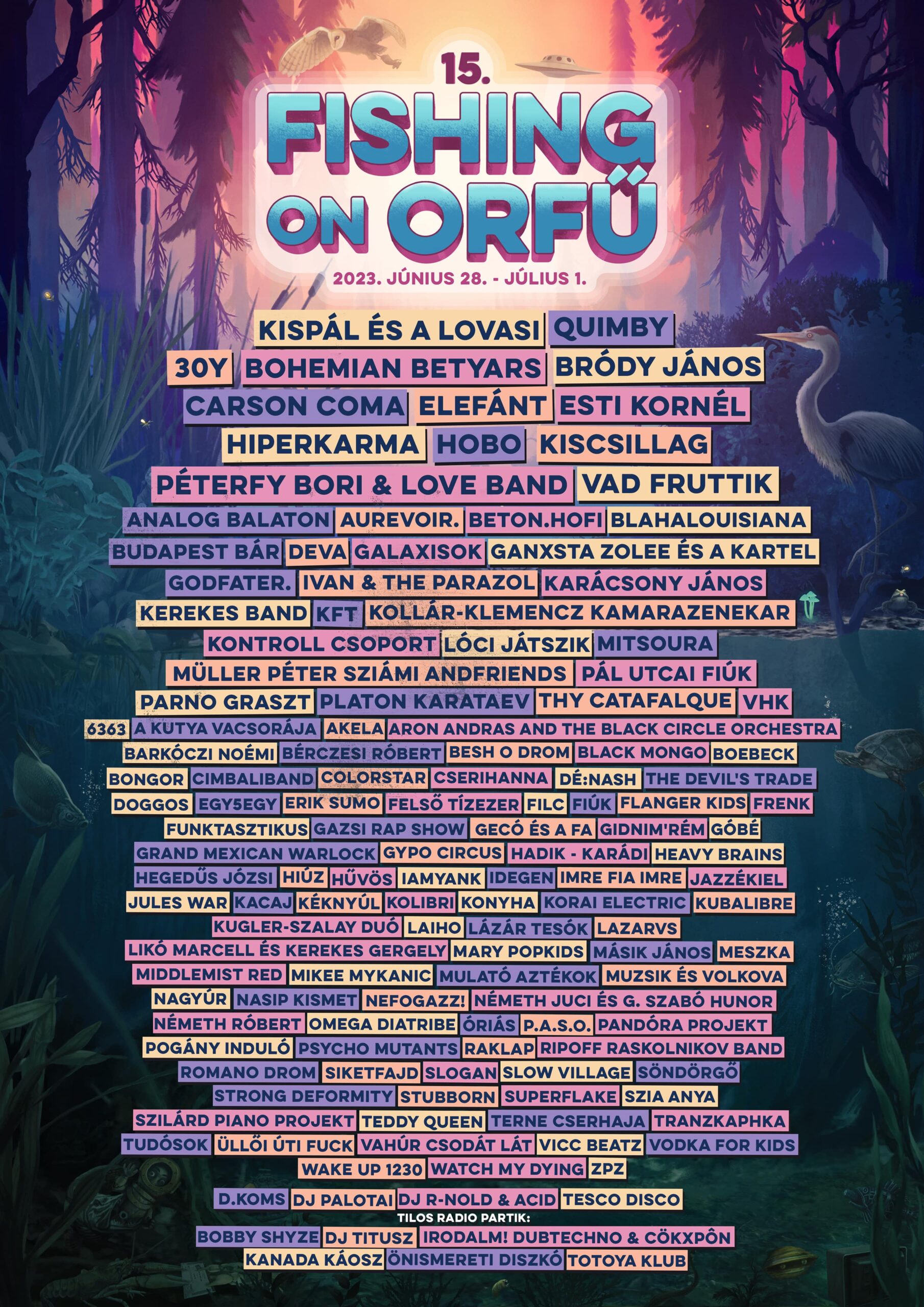 Már szeptember végén lerántotta a leplet tizenöt fellépőről a Fishing on Orfű szervezőgárdája, most pedig kiderült végre a 2023-as teljes program. A jövőre 15 éves fesztivál továbbra sem hagyja cserben a hajnövesztőket, és több napon is előcsalogatja azokat a berozsdásodott metálvillákat. Többek között az alábbi zenekarok lépnek fel jövőre a festői szépségű Orfűn: