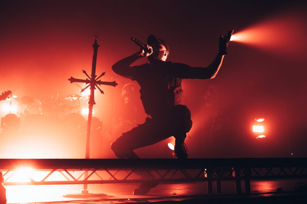 Mindez az este legjobb soundjával körítve (nyilván, hát legutóbb is mindenki más szarul szólt előttük, ők meg - nahát! - mégis jól), lehetett volna azért kicsit még hangosabb és erősebb, de bőven élvezhető volt. Vizuális oldalról meg gyönyörűen kidolgozott fények, egy sor lángszóró, és a 2020-as bulihoz képest jócskán leskálázott színpadkép - eltűntek például azok a bazi nagy emelvények, amiket már legutóbb se nagyon használtak ki a zenészek, így most csak a lámpaoszlopok meg az új lemez artworkjét idéző csontis molinók adták a színpadi díszleteket. Nem sok, de tényleg nem is hiányzott, hogy ennél több legyen.